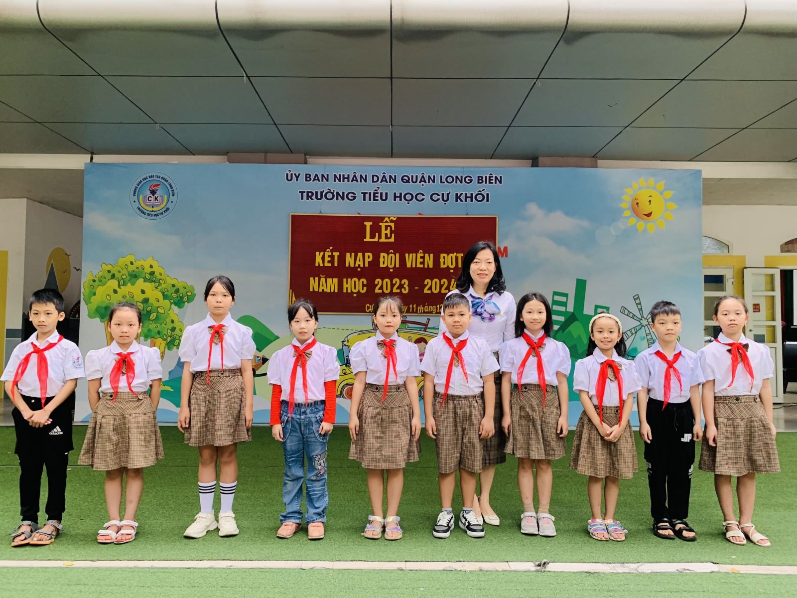 Hòa chung trong không khí chào mừng kỉ niệm 51 năm chiến thắng Điện Biên Phủ trên không, 79 năm ngày thành lập Quân đội Nhân dân Việt Nam, thực hiện sự chỉ đạo của Hội đồng Đội quận Long Biên, thực hiện chương trình công tác Đội năm học 2023 - 2024, được sự nhất trí của Ban giám hiệu nhà trường, ngày 11/12/2023, Liên đội trường Tiểu học Cự Khối đã tổ chức Lễ kết nạp đội viên đợt 1 cho 75 bạn nhi đồng xuất sắc khối 3 năm học 2023 - 2024.