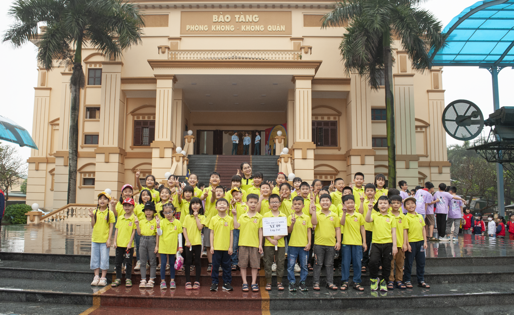 Điểm dừng chân đầu tiên của đoàn là bảo tàng Phòng không - Không quân. Tại đây các em học sinh được nghe các cô hướng dẫn giới thiệu và chia sẻ về những chiến thắng oanh liệt của quân và dân ta; sau đó được trực tiếp tham quan các khoang máy báy và các hiện vật – những hiện vật có giá trị được lưu giữ tại bảo tàng.