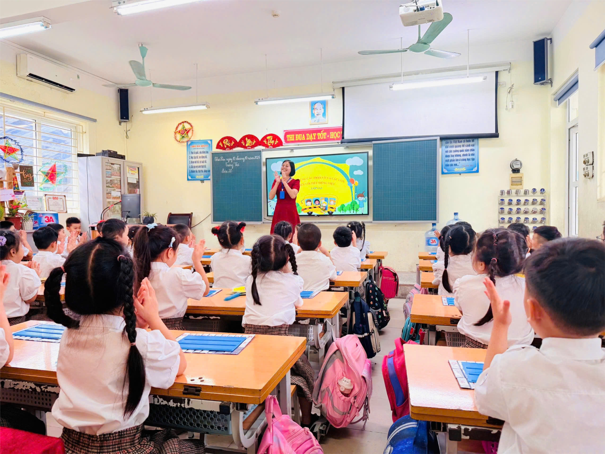 Đến dự tiết chuyên đề có cô giáo Hoàng Thị Bích Liên – Hiệu trưởng nhà trường, cô giáo Phạm Thị Ngọc Bích – Phó Hiệu trưởng, cùng toàn thể các cô giáo khối 1 và các thầy cô giáo trong nhà trường.
