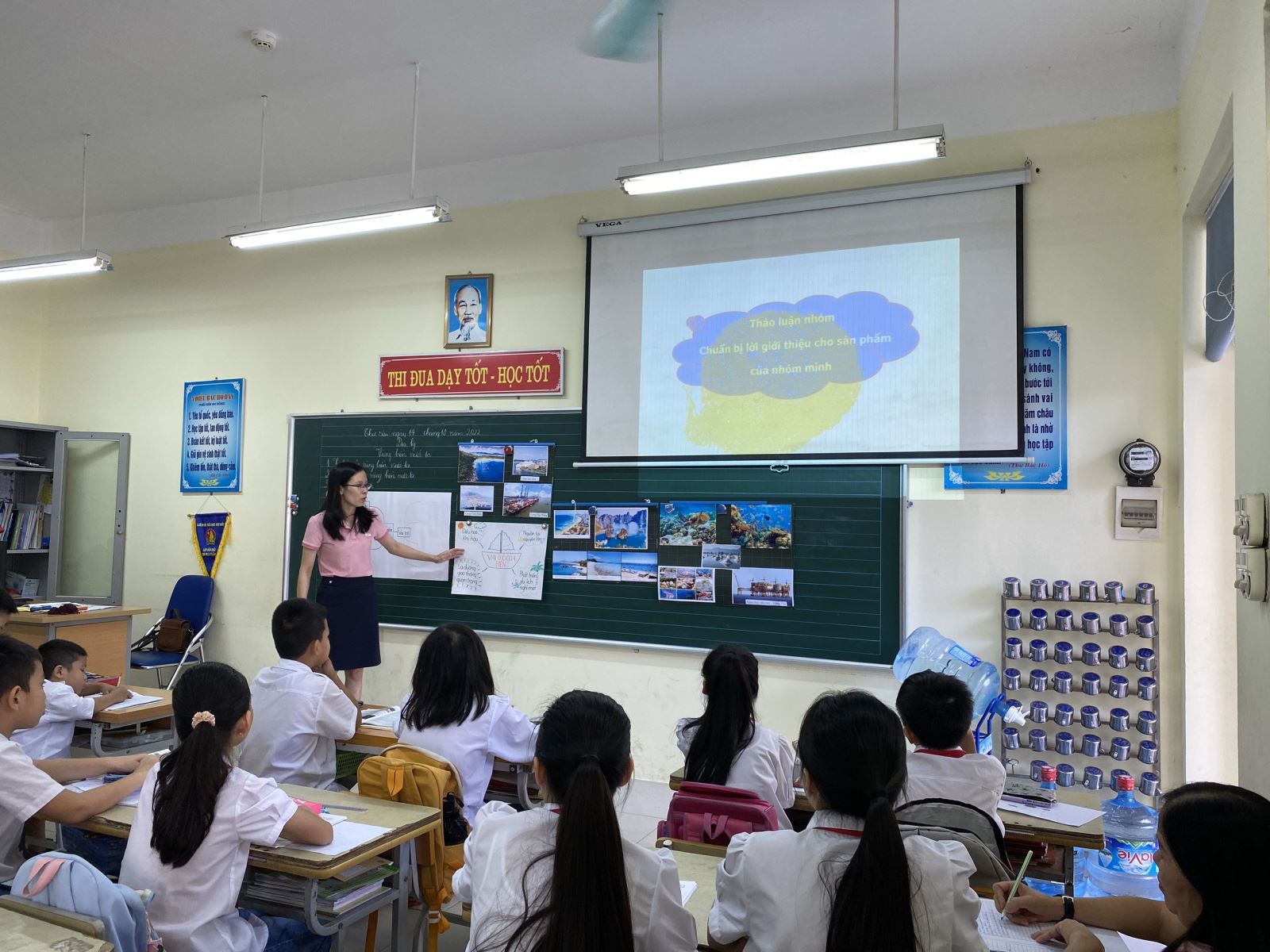 Cô giáo Đào Thị Nhung trong tiết Khoa học lớp 5A5
