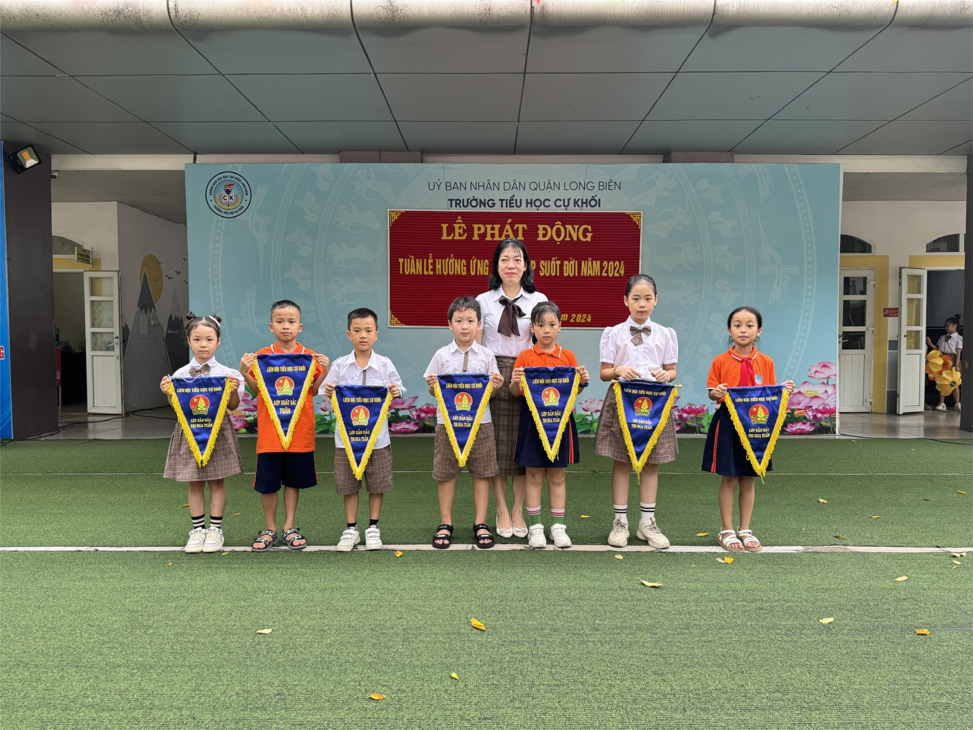 Thực hiện theo sự chỉ đạo của Ban Chỉ đạo xây dựng xã hội học tập quận Long Biên về tổ chức Tuần lễ hưởng ứng học tập suốt đời năm 2024, sáng thứ Hai ngày 30/9/2024 trường TH Cự Khối tổ chức thành công lễ phát động Tuần lễ hưởng ứng học tập suốt đời với chủ đề “Phát triển văn hoá đọc thúc đẩy học tập suốt đời”.