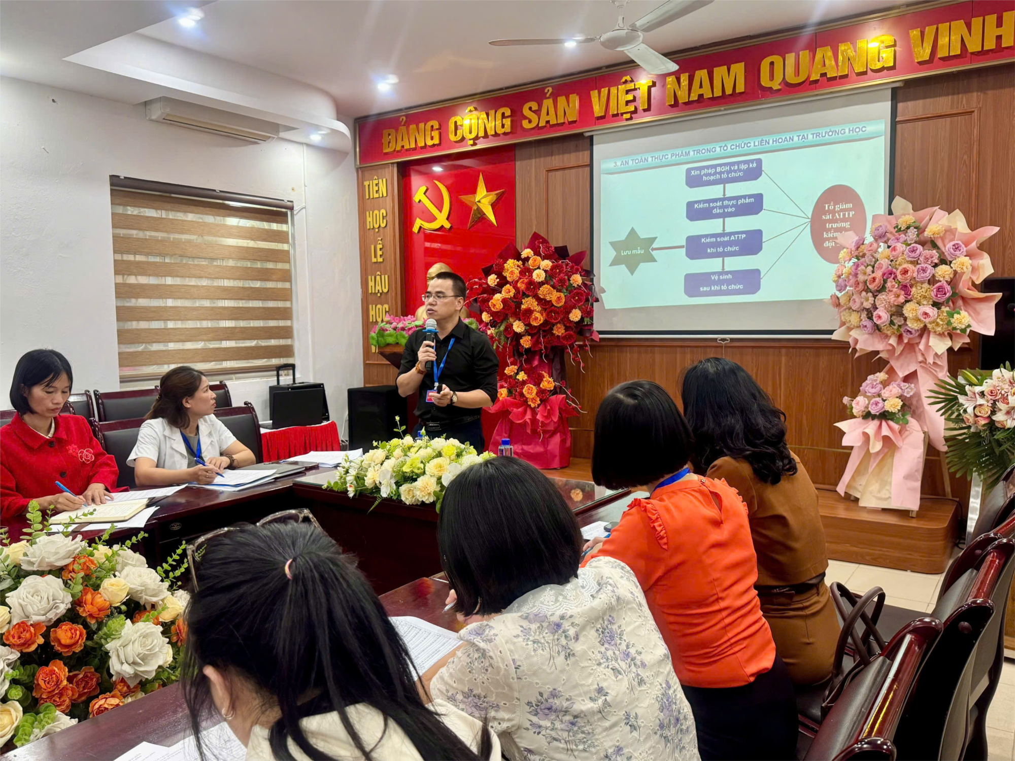 Mở đầu buổi tập huấn, đồng chí Hoàng Thị Bích Liên - Bí thư chi bộ - Hiệu trưởng nhà trường đã nêu rõ mục đích của buổi tập huấn: nhằm nâng cao nhận thức và trách nhiệm của cán bộ, giáo viên trong việc bảo đảm vệ sinh an toàn thực phẩm tại trường học, đặc biệt trong công tác bán trú và chăm sóc học sinh.