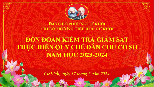 Thực hiện Quyết định số 136-QĐ/ĐU ngày 04/7/2024 của Đảng ủy phường Cự Khối về việc giám sát chi bộ Trường Tiểu học Cự Khối về công tác lãnh đạo, chỉ đạo và thực hiện Quy chế dân chủ cơ sở năm học 2023- 2024, chiều ngày 17/7/2024, đoàn kiểm tra giám sát thực hiện Quy chế dân chủ Đảng uỷ phường Cự Khối có buổi làm việc tại nhà trường. Thành phần đoàn kiểm tra gồm có: chí Nguyễn Quốc Toản – Bí thư Đảng ủy phường - Trưởng đoàn, cùng đồng chí Nguyễn Thị Minh- Phó bí thư Đảng ủy phường, đồng chí Ngô Văn An- Đảng ủy viên, Chủ tịch Mặt Trận Tổ quốc phường và các đồng chí trong Ban chỉ đạo thực hiện Quy chế dân chủ của Phường.