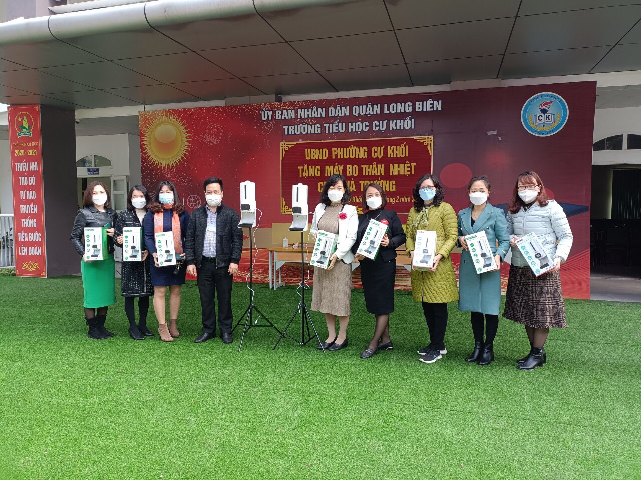 !important; Nhằm giúp trường tiểu học Cự Khối và các nhà trường trên địa bàn phường Cự Khối trong công tác phòng, chống dịch Covid-19 sẵn sàng đón các con học sinh trở lại trường, sáng ngày 14 tháng 02 năm 2022, các đ/c lãnh đạo UBND phường Cự Khối đã trao tặng máy khử khuẩn và đo thân nhiệt tự động cho các trường học trên địa bàn phường Cự Khối.