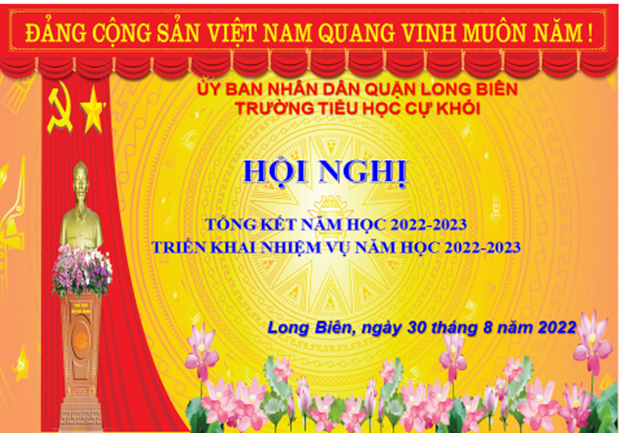 Trong khô !important;ng khí cả nước thi đua lập thành tích chào mừng 77 năm Cách mạng tháng Tám và Quốc khánh 2/9, thực hiện sự chỉ đạo của Phòng GD & ĐT quận Long Biên, sáng ngày 30/8/2022, trường Tiểu học Cự Khối đã tổ chức Hội nghị tổng kết năm học 2021-2022, triển khai nhiệm vụ trọng tâm năm học 2022-2023.