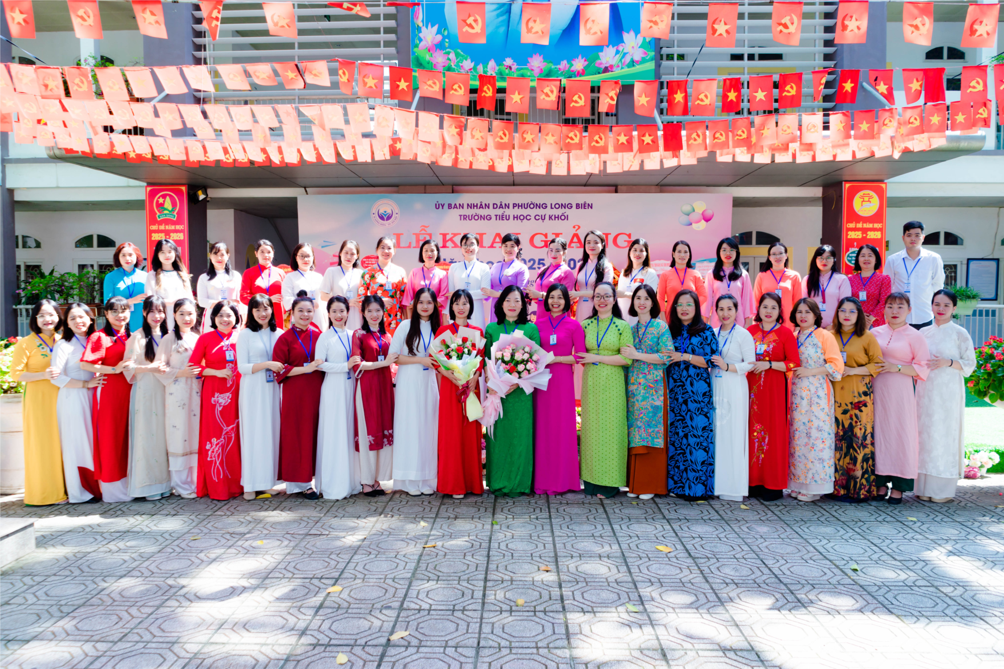 Tới dự Lễ khai giảng có ông Nguyễn Quang Toản - Uỷ viên Ban thường vụ - Phó chủ tịch HĐND phường Long Biên; bà Ngô Thị Hằng - chuyên viên phòng VHXH, bà Võ Thị Hải Yến - Chuyên viên Văn phòng HĐND&UBND cùng các ông bà đại diện các tổ trưởng dân phố; Ban đại diện hội cha mẹ học sinh, đại diện Trung tâm Anh ngữ Bình Minh, Dream Sky,...Về phía nhà trường có cô giáo Hoàng Thị Bích Liên, Bí thư chi bộ - Hiệu trưởng nhà trường; cô giáo Phạm Thị Ngọc Bích, Phó Bí thư chi bộ - Phó Hiệu trưởng nhà trường, các đồng chí giáo viên, nhân viên cùng toàn thể 1047 em học sinh toàn trường. Không khí tưng bừng đón ngày Hội lớn đã hiện rõ trên nét mặt vui tươi của các em học sinh ngay từ sáng sớm. Đúng 7h15 phút, buổi Lễ khai giảng được bắt đầu. Mở đầu buổi lễ là chương trình văn nghệ chào mừng như những đóa hoa nghệ thuật rực rỡ sắc màu. Lời ca tiếng hát, điệu múa dân gian mềm mại, những bài ca ngợi quê hương - đất nước, ca ngợi thầy cô và mái trường… của các thầy cô giáo trong trường như một bản giao hưởng ngập tràn niềm tin, yêu thương và hy vọng. Mỗi tiết mục là một lời chào đầy cảm xúc gửi đến năm học mới, thể hiện tài năng, nhiệt huyết và sự đoàn kết của thầy trò.